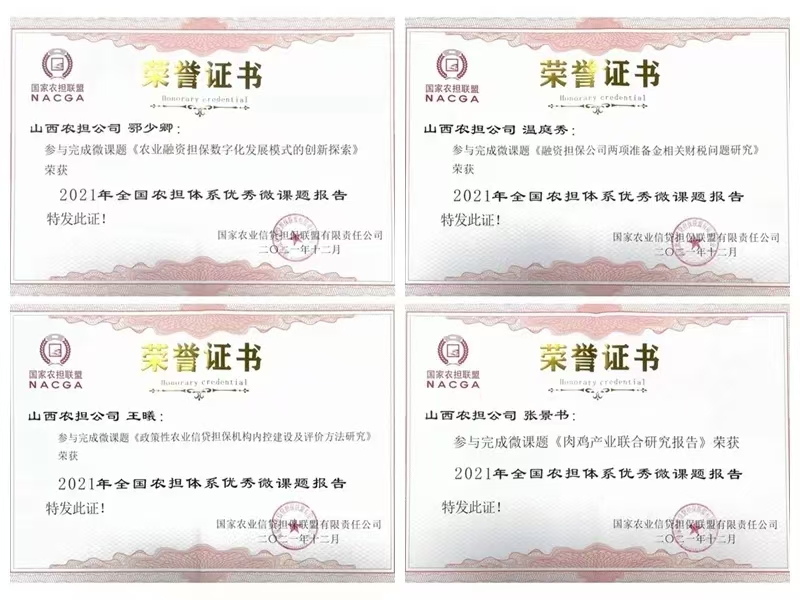 山西農(nóng)擔(dān)多項(xiàng)擔(dān)保產(chǎn)品(模式)案例及微課題研究獲國(guó)家農(nóng)擔(dān)表彰