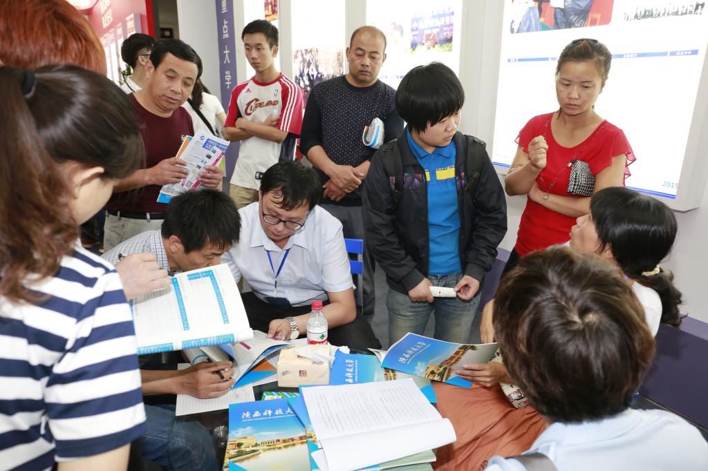 本屆博覽會暨招生咨詢會的主題是“展示辦學特色、強化信息服務、促進資源共享、助力強省建設”,旨在通過展覽、交流、咨詢、推介等系列活動,展示陜西高等教育的優勢、特色與成就,推動全省普通高等學校之間的溝通與交流,鼓勵和引導大學生勇于創新、自主創業,宣傳國家和我省今年的高考招生政策,提升陜西高等教育的影響力,進一步提升陜西高等教育的核心競爭力、科技貢獻率和社會影響力。中共陜西省委高教工委書記李仲為(右一)、陜西省教育廳廳長李興旺(右二)在潘中偉等陪同下參觀我校展臺黨委書記潘中偉(右二)、校長姚書志(右三)、黨委副書記溫鋒(右一)、副校長王學川在我校展臺前現場指導工作