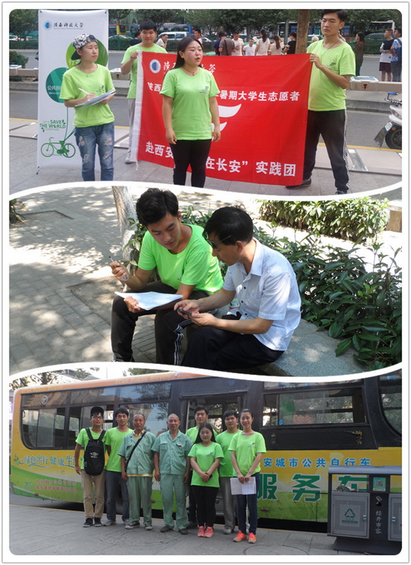 7月24日至31日,管理學院“行在長安”社會實踐團開展了西安市公共自行車運營現狀的調研活動。團隊成員先后走訪了西安市公共自行車管理有限責任公司,并且深入到龍首村、市圖書館等使用頻率較高的公共自行車站點進行實地調查。他們科學選取西安市公共自行車租賃處樣本點,記錄站點自行車早午晚高峰期的進出數量和整點時刻站點自行車停放量,訪談各站點的調度員和工作人員,并以問卷調查的形式向自行車使用者做騎行體驗反饋,回收各類有效問卷890余份。成員還在行政中心等站點舉行了綠色公益宣講會,號召廣大市民綠色出行,文明出行。