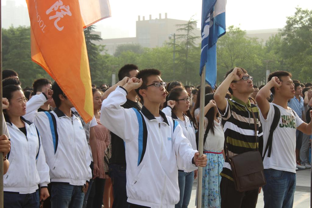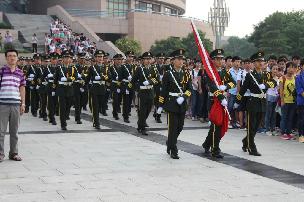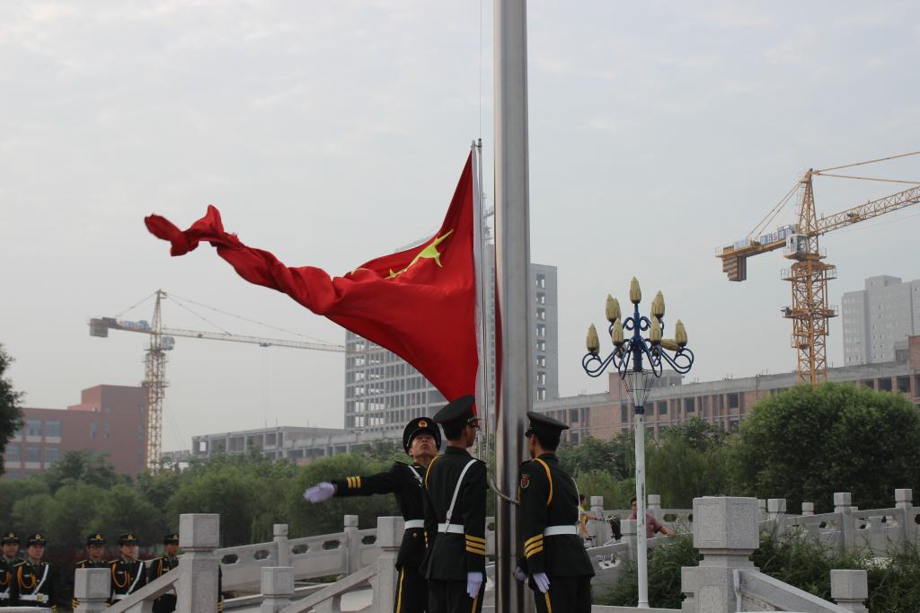 7月1日清晨,13個學院(部)的1000多名黨員及入黨積極分子齊聚福慧圖書館南廣場參加升國旗儀式,共同慶祝偉大的中國共產黨94歲生日。