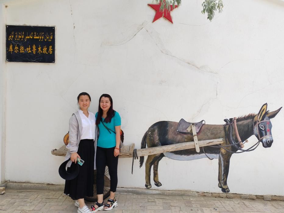 李娟(左一)與同事在庫爾班·吐魯木故居合影留念