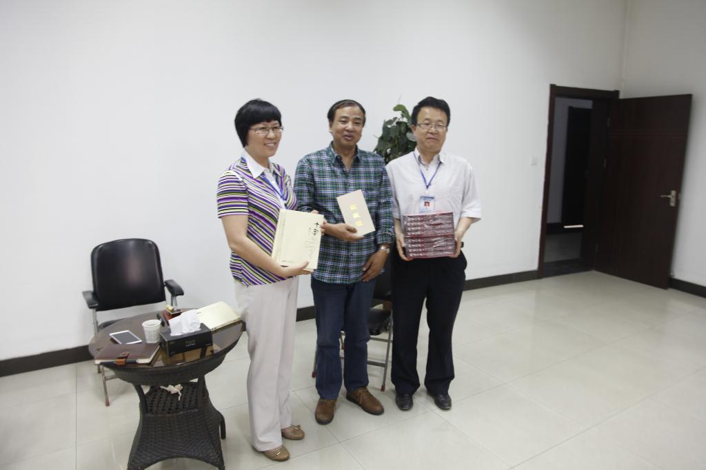 陜西著名文化學者、作家石崗(圖中)向我校圖書館贈書