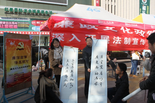 在我國第一個“憲法日”來臨之際,為全面貫徹落實十八屆四中全會精神,增強全民法治觀念,強化反腐倡廉意識,推進(jìn)法治社會建設(shè),由西安市未央?yún)^(qū)紀(jì)委、司法局主辦,我校管理學(xué)院團(tuán)委與法學(xué)系及陜西豐東律師事務(wù)所承辦的12·4“憲法日”公益法制宣傳活動在未央?yún)^(qū)龍首村紅星美凱龍廣場舉行。