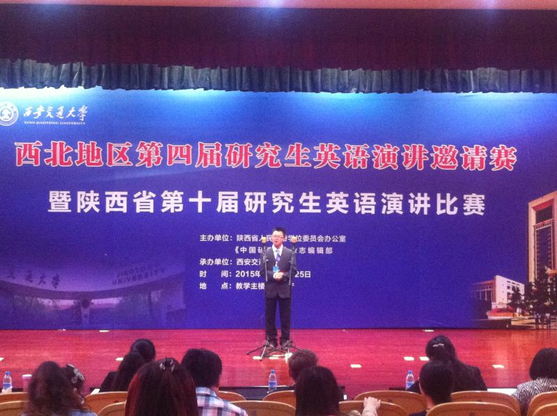 西北地區第四屆研究生英語演講邀請賽暨陜西省第十屆研究生英語演講比賽依托西北地區研究生教育平臺領導小組辦公室,由陜西省人民政府學位委員會辦公室和《中國研究生》編輯部主辦,西安交通大學和陜西省研究生外語教學研究會負責承辦。本屆比賽有來自西北五省及內蒙古自治區69個研究生培養單位94名選手,按照指定題目演講、即席演講和現場問答三個環節的展示,評選出一等獎3名,二等獎8名,三等獎12名。