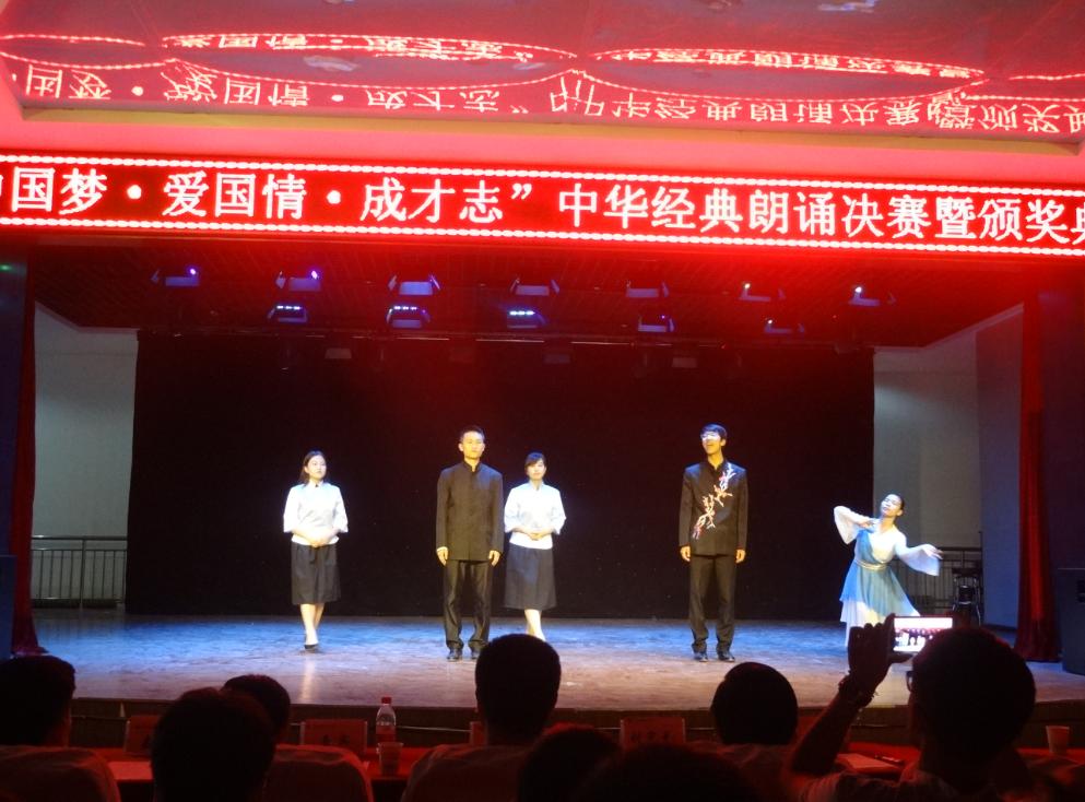 由校團委、校學生會聯合主辦,歷時2個月的我校“中國夢,愛國情,成才志”中華經典誦讀比賽于5月23號圓滿畫上句號。