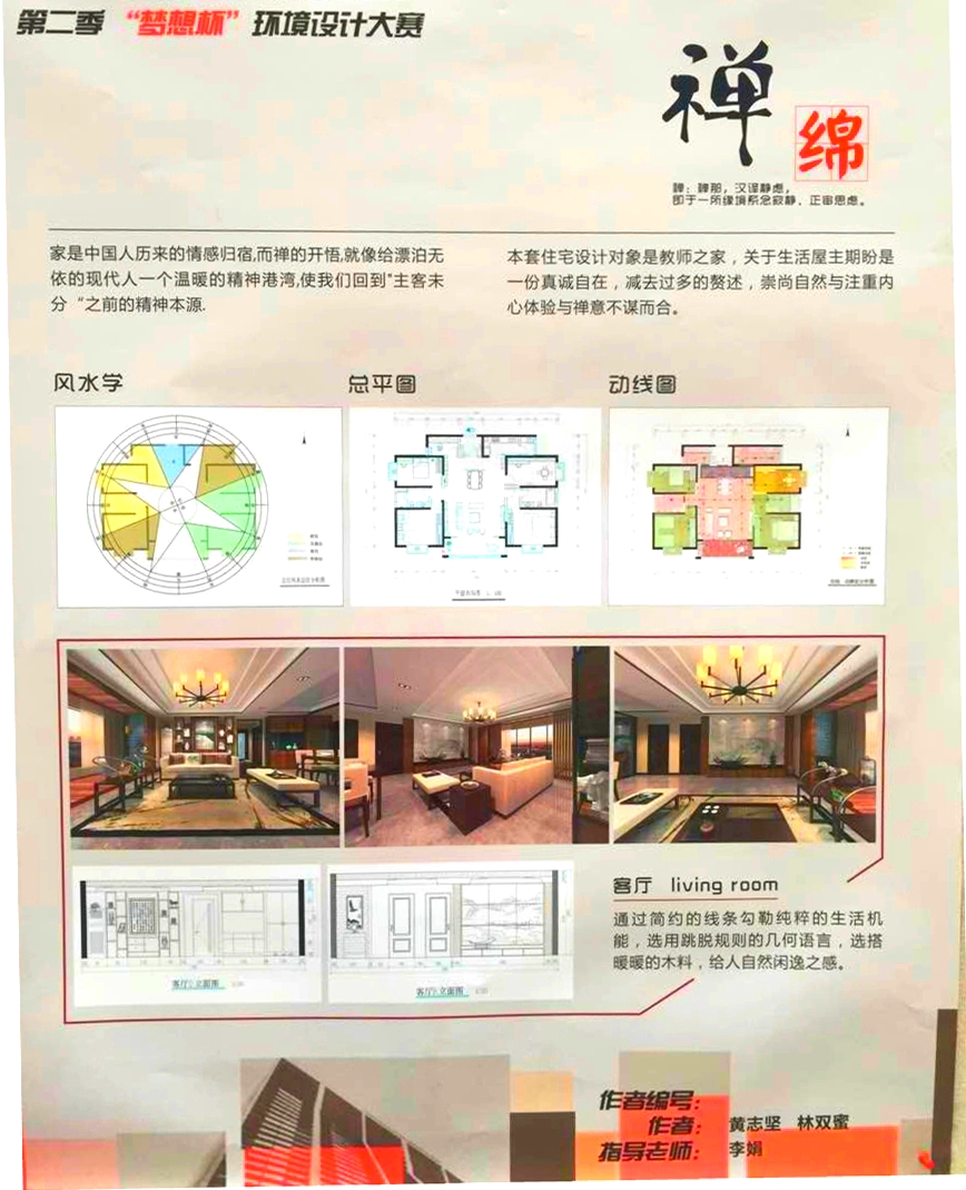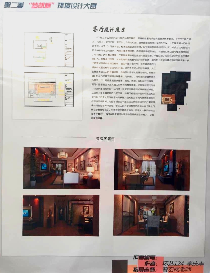本次大賽由校工會(huì)、校團(tuán)委、設(shè)藝學(xué)院主辦,旨在為陜科大第二期教職工住宅戶主提供裝修方案,以功能性和人性化為設(shè)計(jì)重點(diǎn),同時(shí)兼顧滿足教職工對(duì)室內(nèi)裝潢的審美需求,著力體現(xiàn)科大學(xué)生的主人翁精神和設(shè)計(jì)素養(yǎng)。自去年年底大賽啟動(dòng)以來(lái),共計(jì)布展120幅裝修方案,展出70余天,已被教職工采納的方案14套,獲獎(jiǎng)方案17套。一等獎(jiǎng)代表作品二等獎(jiǎng)代表作品 經(jīng)過(guò)專業(yè)評(píng)審組的合議,設(shè)藝學(xué)院環(huán)藝專業(yè)2011級(jí)黃志堅(jiān)、林雙蜜組合的180平米現(xiàn)代中式風(fēng)格裝修方案憑借極具震撼的視覺(jué)效果、實(shí)用時(shí)尚的設(shè)計(jì)思路、飽含傳統(tǒng)元素的設(shè)計(jì)理念獲得總冠軍,最終捧得“夢(mèng)想杯”;2012級(jí)學(xué)生楊惠的100平米簡(jiǎn)約現(xiàn)代風(fēng)格、李慶豐的140平米現(xiàn)代中式風(fēng)格、周斯昊的180平米現(xiàn)代中式風(fēng)格獲得亞軍;符益東的100平米北歐風(fēng)格、雍錦軒的120平米現(xiàn)代簡(jiǎn)約風(fēng)格、孫鈺瑩的140平米簡(jiǎn)約田園混搭裝修方案獲得季軍。張?jiān)降仁麑W(xué)生獲得了優(yōu)秀獎(jiǎng)。 作為設(shè)藝學(xué)院“畫(huà)筆點(diǎn)綴青春,設(shè)計(jì)服務(wù)校園“的系列品牌活動(dòng)之一,第二屆“夢(mèng)想杯”為陜科大教職工提供了符合居住需求的設(shè)計(jì)方案亦鍛煉了同學(xué)們的專業(yè)能力,起到了促進(jìn)學(xué)風(fēng)、提振士氣的作用,也符合學(xué)院結(jié)合專業(yè)開(kāi)展校園文化活動(dòng),解決實(shí)際問(wèn)題的工作思路。頒獎(jiǎng)現(xiàn)場(chǎng)環(huán)藝教研室?guī)熒硎荆骸皦?mèng)想杯”讓更多同學(xué)感受到了環(huán)藝設(shè)計(jì)的獨(dú)特以及艱辛,每個(gè)精美的方案都來(lái)之不易。設(shè)藝學(xué)院執(zhí)行院長(zhǎng)詹秦川在總結(jié)中客觀地對(duì)本屆夢(mèng)想杯做出了點(diǎn)評(píng),指出此次活動(dòng)的設(shè)計(jì)水準(zhǔn)距離高標(biāo)準(zhǔn)還有一定差距,設(shè)計(jì)不僅要滿足一般市場(chǎng)的審美需求,更要盡力得到專業(yè)人士的認(rèn)可,教研室老師應(yīng)該進(jìn)一步發(fā)揮校園活動(dòng)第二課堂的功能,只有在實(shí)踐中教學(xué)方能提升育人的質(zhì)量。(責(zé)任編輯:杜楊 學(xué)生編輯:張寧)