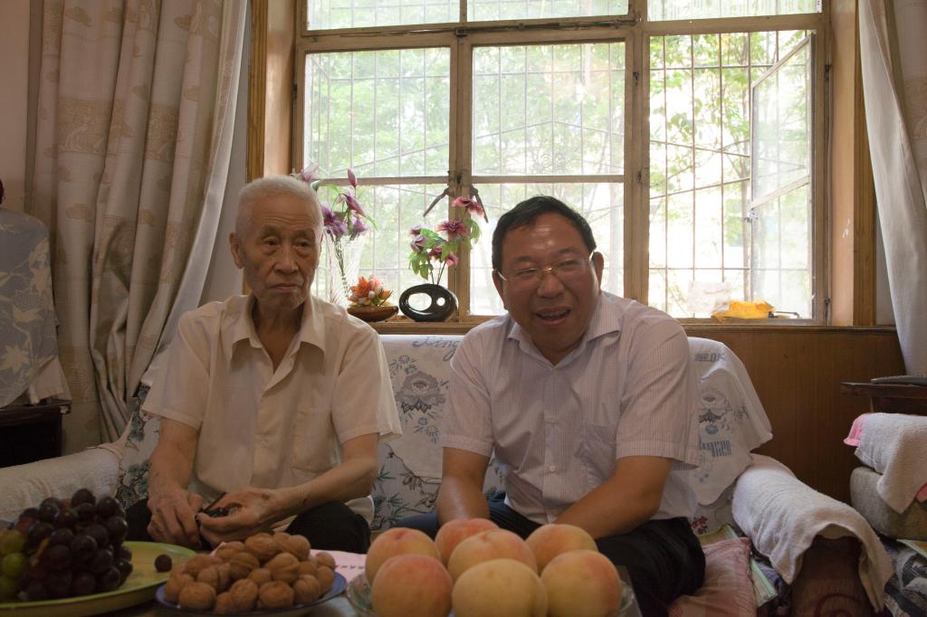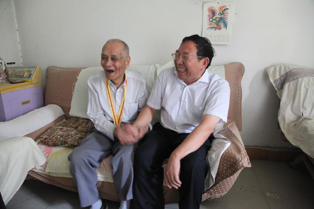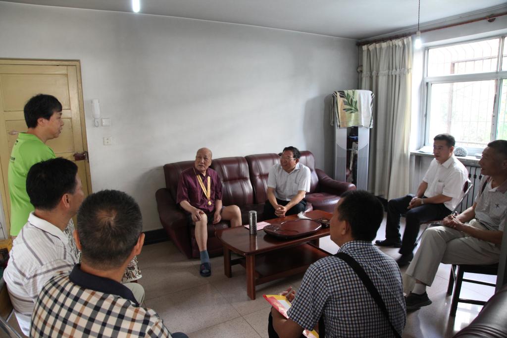 三位老人王登弟、鞠文山、王學詩,年紀最大的已經88歲,最小的也已經87歲,身體都還健康硬朗。姚書志和他們抵足而坐,噓寒問暖拉起家常,詳細了解老人的生活和身體狀況,聽老同志們回憶昔日戰斗歲月,并送上慰問金。希望老同志們保重身體,祝福他們健康長壽。當來到88歲的抗戰離休同志王登弟家中時,老同志激動地握著姚校長的手說:“感謝黨組織對我的關心!我很感動!”老同志對黨組織的關懷和關注表示感謝,并祝愿學校發展越來越好。