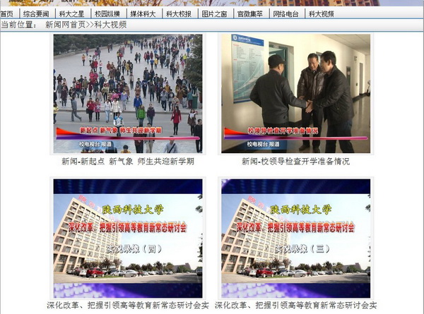 “科大視頻”欄目將重大校園新聞、校園資訊、新聞宣傳等內容以視頻的方式迅速上傳,提升了視頻資訊的快捷性、及時性和時效性的特點,著力打造媒體新聞傳播的新平臺。