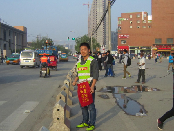 在劉起的帶領下,材料學院青團針對放學期間學校北門口人流車流量過大、學生交通安全問題突出的狀況,在校內開展了交通協管志愿服務活動。此活動堅持開展了兩年,深受廣大師生好評。
