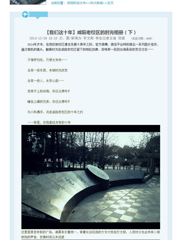 校電視臺(tái)推出了精心制作的十集電視紀(jì)實(shí)片《西安校區(qū)建設(shè)紀(jì)實(shí)》和電視專題片《十年拼搏 鑄就輝煌》,通過大量詳實(shí)、生動(dòng)的視頻資料,生動(dòng)地再現(xiàn)了新校區(qū)建設(shè)眾志成城、只爭朝夕的崢嶸歲月和十年砥礪奮進(jìn)、鑄就輝煌的風(fēng)雨歷程。電視片經(jīng)校園有線電視、學(xué)校官方微信、騰訊視頻等途徑播出,迅速引發(fā)全社會(huì)關(guān)注,僅騰訊視頻上的的點(diǎn)擊率就達(dá)到3200多次。許多單位和個(gè)人還紛紛致電宣傳部希望得到該電視片的光盤作為留念。 官微平臺(tái)推送了“西安校區(qū)建設(shè)的‘絕密’照片”、“你肯定不知道的科研數(shù)據(jù)統(tǒng)計(jì)圖”、“小科和你一起看學(xué)校的新變化”、“漫話數(shù)學(xué)建模大賽的成績”、“我叫李明勇,已經(jīng)從科大畢業(yè)了”、 “昨天·今天 老照片‘外’的時(shí)光掠影”等十個(gè)專題,以更加細(xì)膩動(dòng)人、生動(dòng)有趣的視角展現(xiàn)新校區(qū)發(fā)展點(diǎn)滴。截至目前,總閱讀量近4萬次,轉(zhuǎn)發(fā)收藏近2000次。官微粉絲們紛紛留言評(píng)論,“小禾”說:“很好,這期節(jié)目做的很好!我們畢業(yè)正好十年了,發(fā)到朋友圈里大家都很激動(dòng)。謝謝小編。” “安寧”說:“為啥看了特別想哭。” “帶我去你生活的地方”說:“這期很棒,成果才說明實(shí)力。”