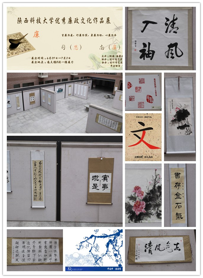由紀委、監察處主辦,設計與藝術學院協辦,設藝學院學生會、書法協會承辦的優秀廉政文化作品展6月29日至7月3日在逸夫樓B段一樓展廳展出。