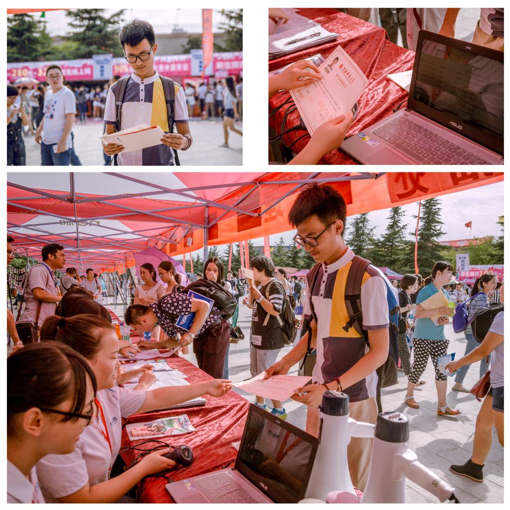 稍作休息后,鄭晨燁當天下午拿著錄取通知書,直奔管理學院新生接待帳篷。學長學姐們早已坐在辦公桌后,精神抖擻地做好了一切的接待準備。這邊一位學姐詢問了他的專業后,很快對他進行了報名資格審查,并為他在工商管理專業接待處注冊信息;那邊另一位學姐遞給他一份報名表,并指導他填寫;最后,貼心的學長為他準備好了“一卡通”和裝著入學指南的袋子,里面裝有一本《大學導航》、一份為新生解惑的《科奕》報紙、一張科大的地圖和其他的一些東西。