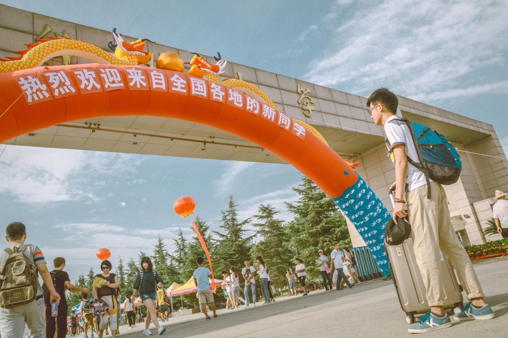 9月5日8時30分,迎著新生的朝陽,管理學院工商管理專業2015級新生鄭晨燁站在陜西科技大學北大門前,門內,彩球搖曳、人潮涌動,這所高等學府已敞開懷抱歡迎他。
