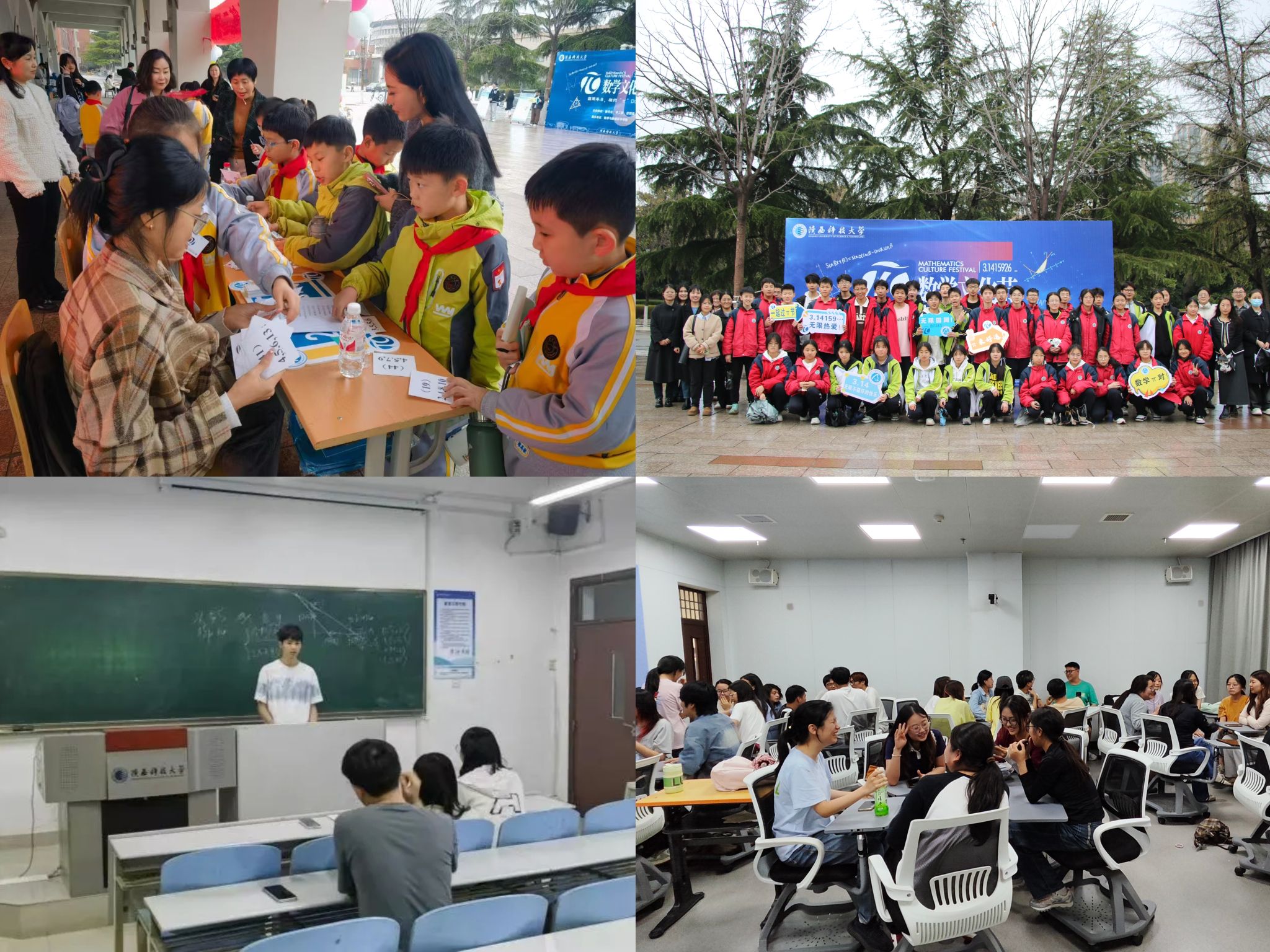 “數(shù)”啟前沿,開拓知識視野,展望數(shù)智未來。圍繞學(xué)科前沿,開展“數(shù)學(xué)文化大講堂”、“數(shù)”說理想導(dǎo)師面對面等活動8場,內(nèi)容涉及科研訓(xùn)練、數(shù)學(xué)建模、數(shù)學(xué)申博輔導(dǎo)等,參與師生400余人,引導(dǎo)學(xué)生跟隨導(dǎo)師視角了解數(shù)學(xué)前沿知識、開拓知識視野。遴選優(yōu)秀學(xué)生骨干,組建“數(shù)學(xué)π”文化宣講團,先后走進西安市經(jīng)開第一小學(xué)、陜科大附小新興小學(xué)、西航三校等5所中小學(xué)進行數(shù)學(xué)文化宣講,參與師生600余人,激發(fā)中小學(xué)生對數(shù)學(xué)的興趣與好奇心,用專業(yè)力量為數(shù)學(xué)啟蒙教育注入新的活力。