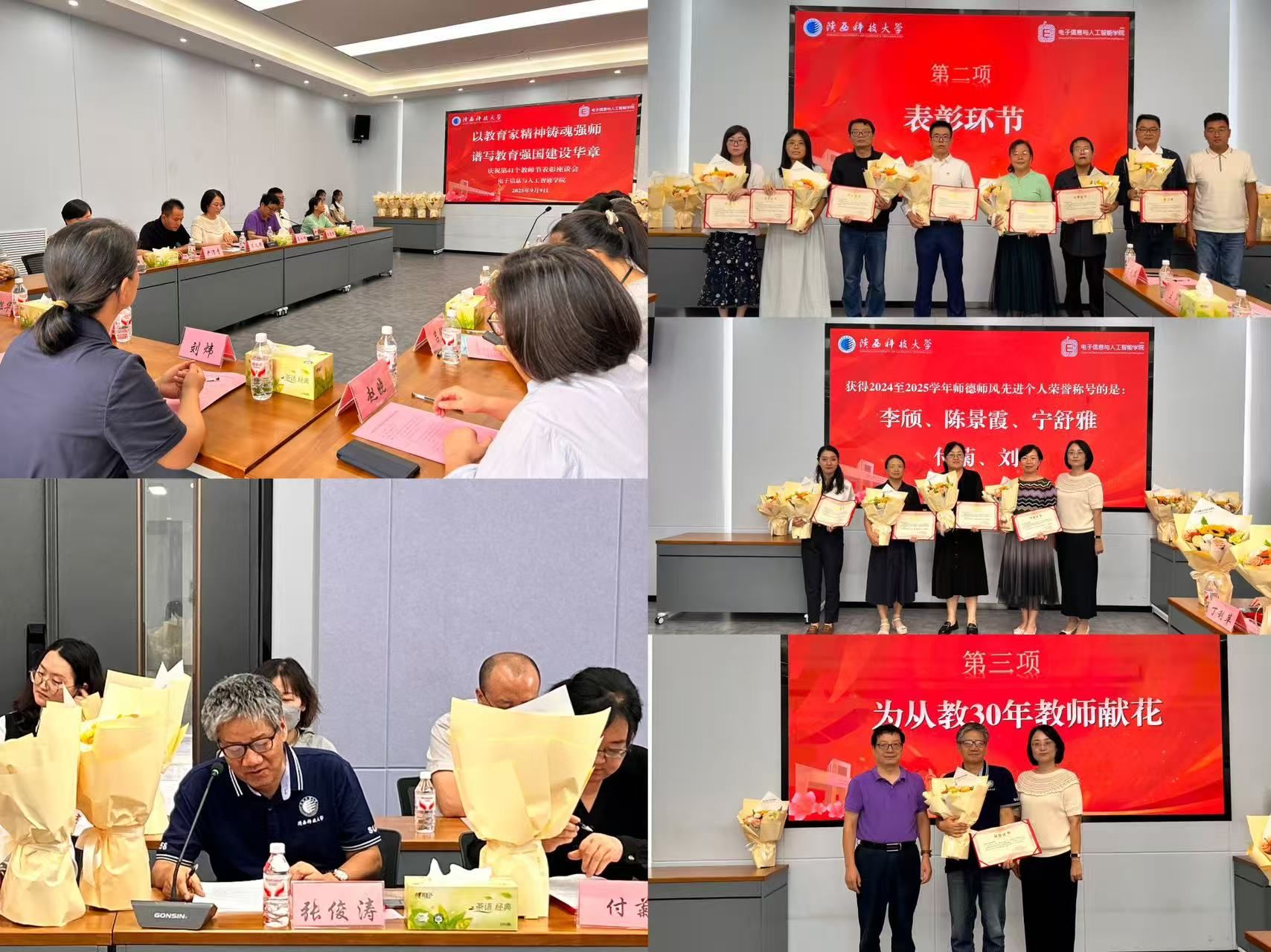 9月9日至10日,在第41個教師節(jié)來臨之際,電智學(xué)院開展系列慶祝活動,通過選樹典型、表彰先進(jìn)、師生互動等多種形式,大力弘揚(yáng)教育家精神,營造尊師重教、崇智尚學(xué)的濃郁氛圍,全面展現(xiàn)學(xué)院師德師風(fēng)建設(shè)成果。