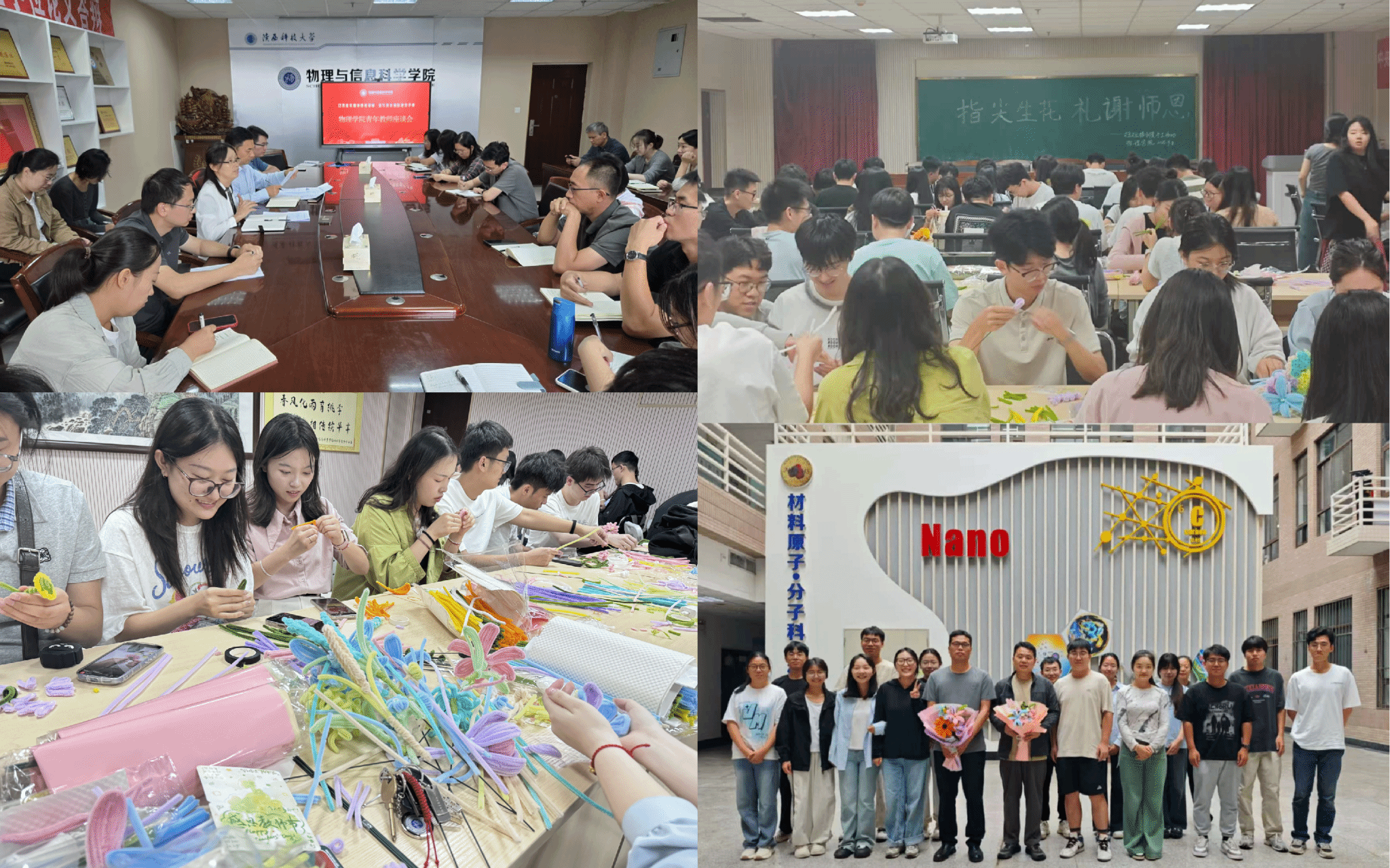 指尖傳情,以手工花束承載師恩謝言。“老師,祝您節日快樂,這束康乃馨是我們親手做的!”教師節當天,理科樓大廳“花香”涌動。學院團委發起的“指尖生花,感謝師恩”活動進入“派送時刻”——400余名本科、研究生,歷時3天親手用扭扭棒制作完成800余支康乃馨、向日葵、郁金香、滿天星等花束,最終拼裝成一束束精美的節日花束送給全院70余名教師。教師們紛紛表示,這是收到過最特別的教師節禮物!