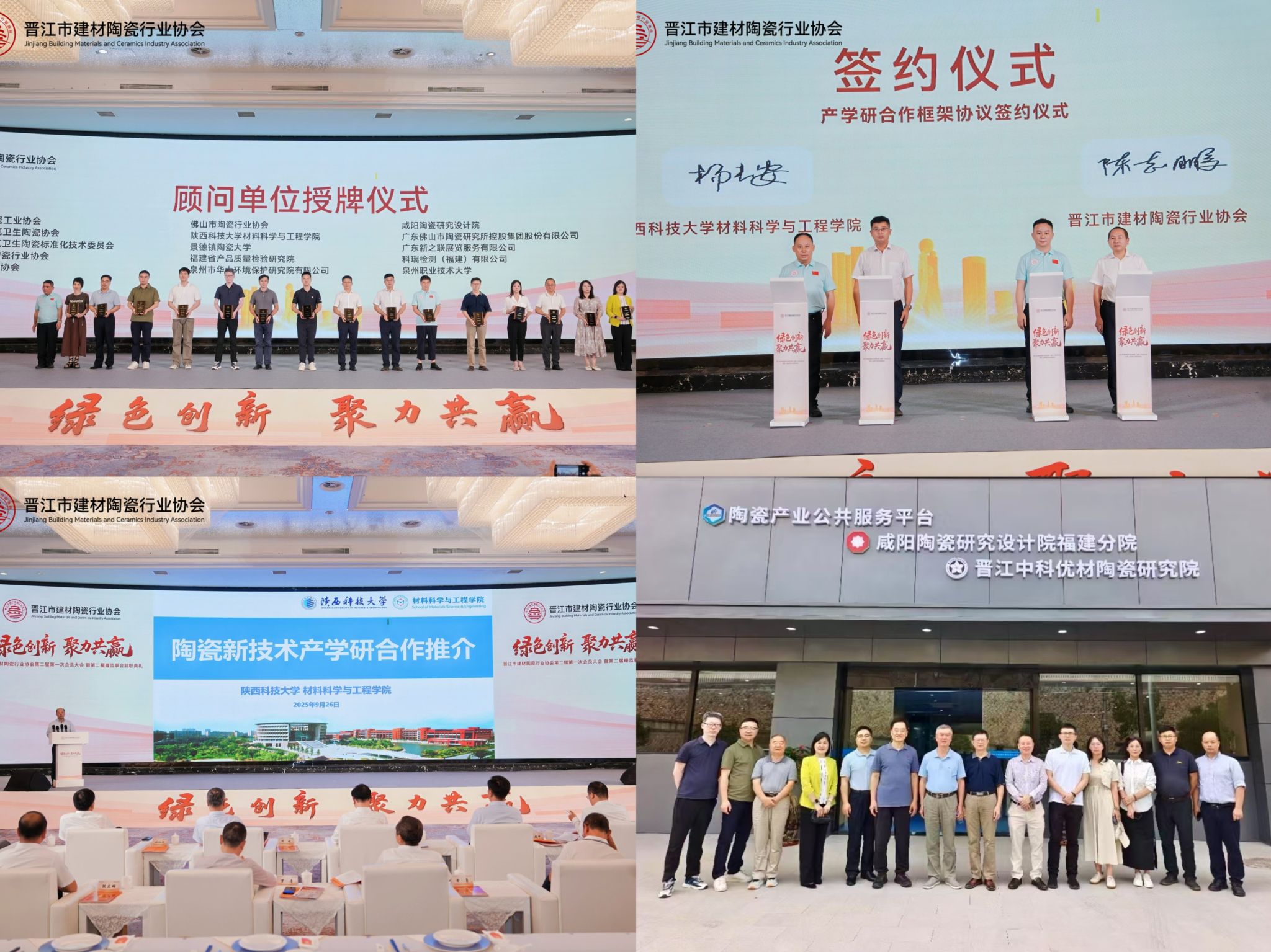 會上,材料學院黨委書記楊長安與晉江市建材陶瓷行業協會簽署產學研合作框架協議;副院長歐陽海波介紹了材料學院的學科特色與優勢,重點推介了大尺寸陶瓷薄板強韌化技術、陶瓷釉面裝飾-功能一體化技術等11項科技成果。