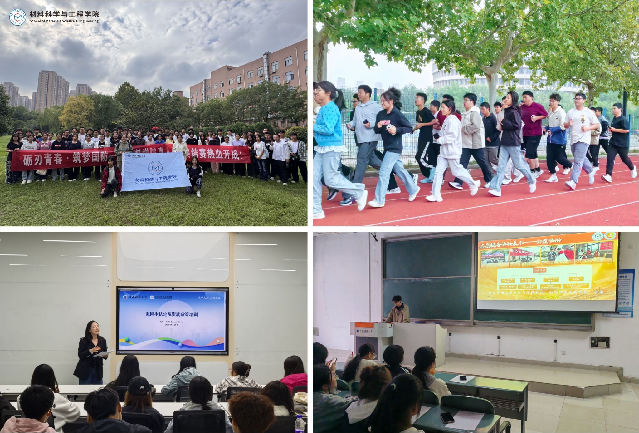 促進五育并舉,拓展多元成長平臺,賦能學生發展。學院高度重視學生多元發展,打造“體·閱·學”三維浸潤計劃,以“晨練暮學行動”為抓手,提升新生對于閱讀和體育的熱情,營造優良學風氛圍;軍訓期間開展“礪刃青春?材子筑夢”校園真人CS大賽,在實踐中體悟國防意義,為破解校園多元互動難題提供了趣味載體;開展競賽科普、職業生涯規劃、資助政策宣講等專題講座,加強新生對科創競賽的認識,解答新生個人規劃、考研與就業形勢、資助政策等方面問題;舉辦新生辯論賽、校歌傳唱選拔賽、學生組織宣講會等,提高新生對參與課外活動的熱情,鍛煉同學們的邏輯思維與書面表達能力,增強同學們身體素質與班級凝聚力,極大程度上豐富了同學們的課余生活。