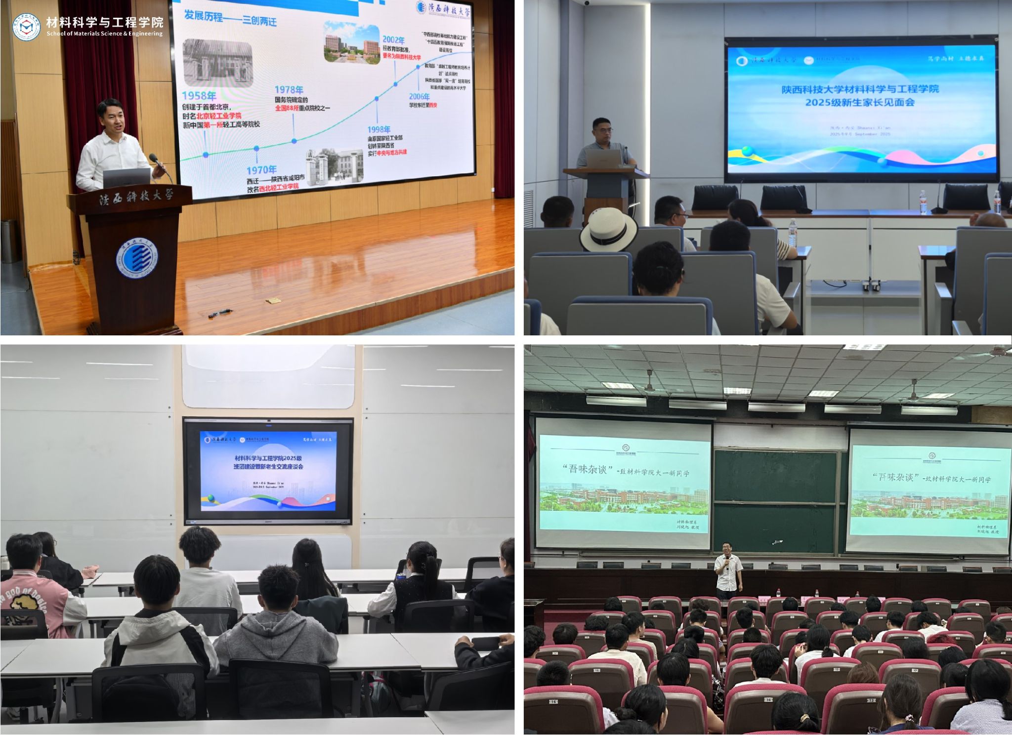 深化思想引領,凝黨團班組織合力,培育優良學風。迎新期間,我院開展“材料學院新生家長見面會”,累計接待百余名新生及家長,解答其在學業、生活等方面問題;以材料校友會成立大會為契機,為全體新生開展“開學第一課”入學教育大會,院長楊海波從學院的歷史沿革、校園生活等多方面進行介紹,鼓勵同學們緊抓時代機遇、提高認知上限,做“三創兩遷”精神新傳人;各系主任、班主任組織開展新生見面會與專業宣講專題講座,使新生提前了解專業知識內容,形成專業基本認知;2025級輔導員李恩帶領全體新生集中學習《陜西科技大學章程》與《大學導航》詳情內容,幫助新生了解學校基本規定和學院管理制度;開展“班委座談會暨班團建設交流會”,邀請高年級優秀學生代表與新生進行經驗交流,為打造優良學風、班團一體化建設夯實基礎。