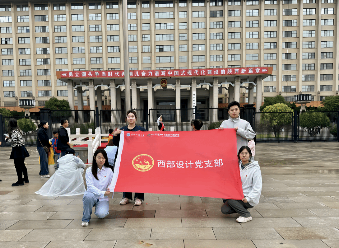 10月1日,為慶祝中華人民共和國成立76周年,陜西科技大學西部設計黨支部黨員代表們前往陜西省人民政府新城廣場觀看升旗儀式。晨曦微露,秋雨初歇,新城廣場上人群肅立,支部黨員與各界群眾共同等候莊嚴時刻。八時三十分,國旗護衛隊步伐鏗鏘,護送五星紅旗步入廣場。激昂的國歌奏響,紅旗在雨后澄澈的碧空下冉冉升起。成群和平鴿環繞國旗翱翔,羽翼劃出優美弧線,眾人齊聲高唱國歌,把對祖國的摯愛融入鏗鏘旋律。