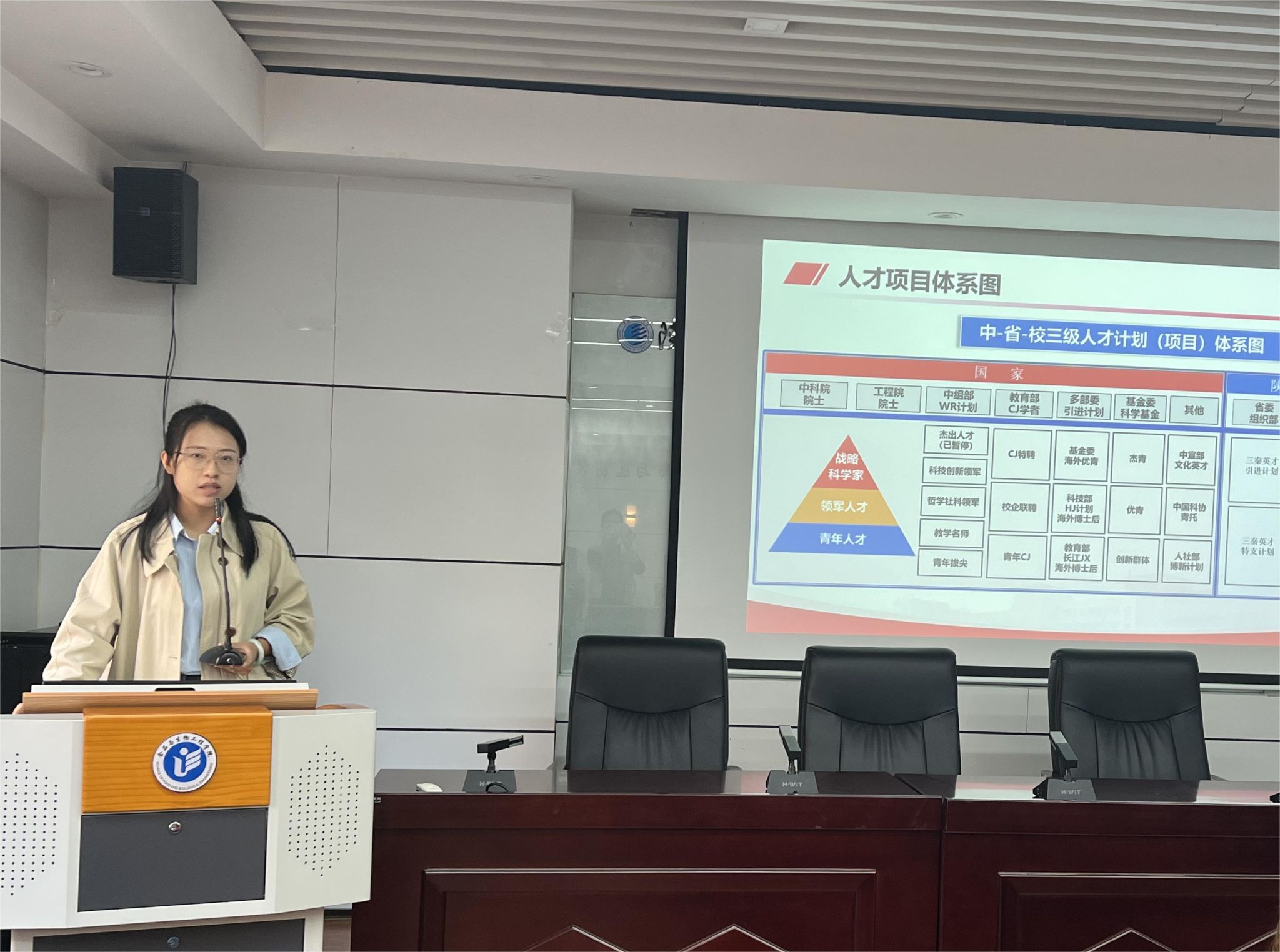 黨梓睿詳細介紹了國家級、省級各類人才項目的申報政策,細致解讀了各類人才項目的評審流程及與教師職業(yè)發(fā)展的銜接路徑,為學院青年教師規(guī)劃長遠學術(shù)生涯、實現(xiàn)職業(yè)階梯式發(fā)展指明了方向。