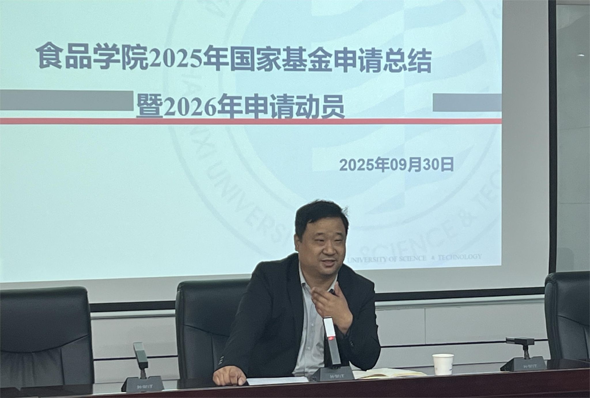 9月30日上午,食品學院召開2026年國家自然科學基金和人才項目申報動員會,助力學院教師精準把握申報政策,凝聚團隊攻堅合力,提升學院的科研競爭力。會議特邀科技處副處長徐衛(wèi)濤和校人才工作辦公室干事黨梓睿作專題報告。2026年國家自然科學基金和人才項目申報的全體教師參加會議,會議由學院副院長姚曉琳主持。