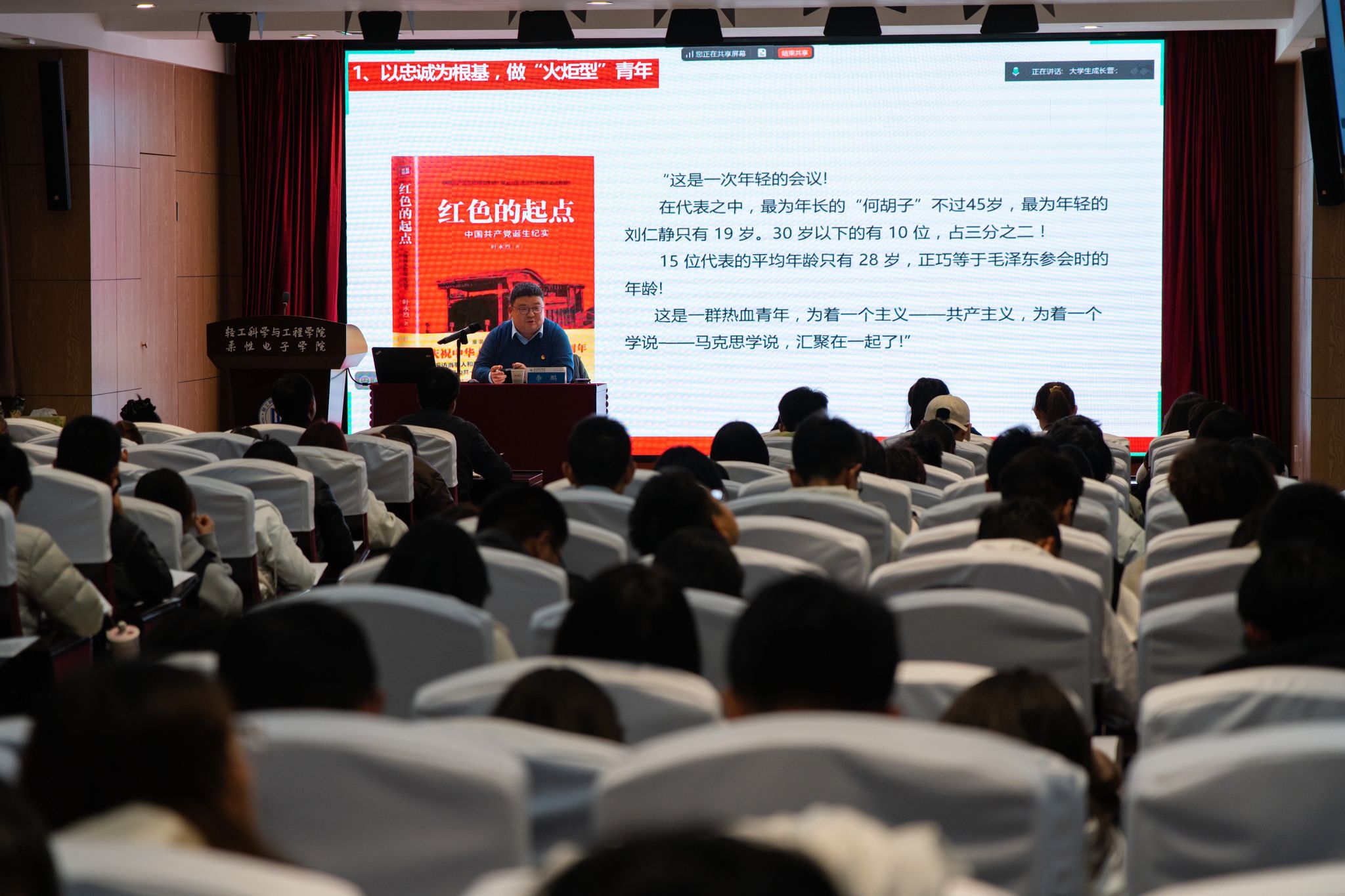 此次授課結(jié)合輕工學院“輕春啟航,筑夢遠行”大學生成長營主題活動開展。校團委、輕工學院、材料學院、環(huán)境學院、化工學院相關負責同志,2025級新生團員代表及團學組織骨干現(xiàn)場聆聽授課。