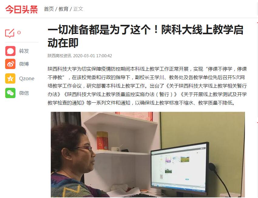 今日頭條APP:一切準備都是為了這個!陜科大線上教學啟動在即
