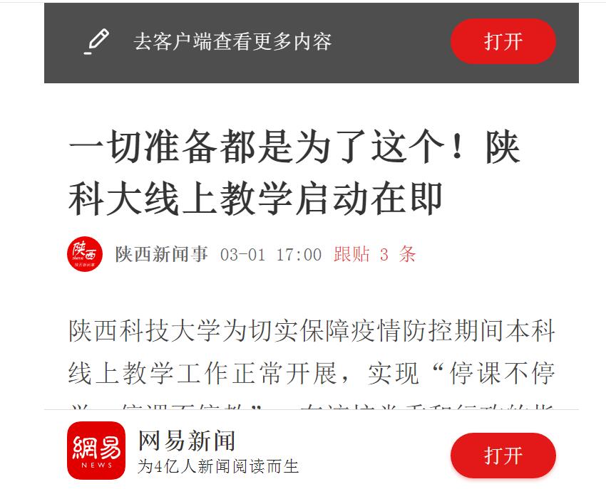 網易新聞APP:一切準備都是為了這個!陜科大線上教學啟動在即