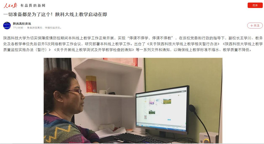 人民日報APP:一切準備都是為了這個!陜科大線上教學啟動在即