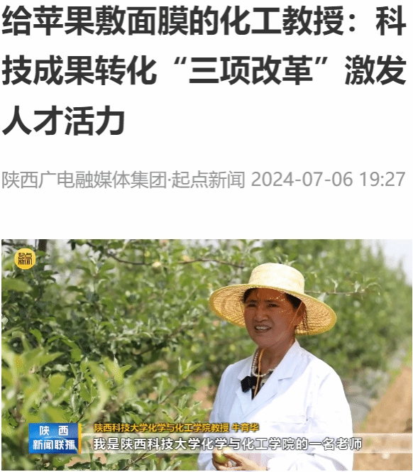 《陜西新聞聯播》:給蘋果敷面膜的化工教授:科技成果轉化“三項改革”激發人才活力