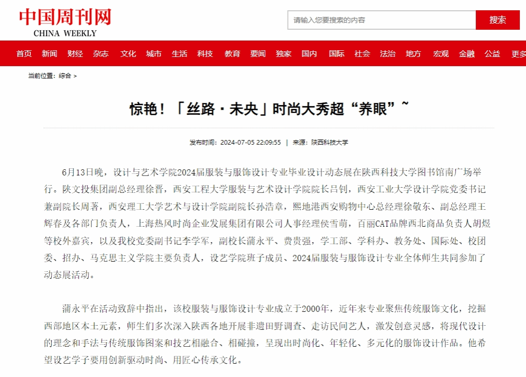 近日,中國周刊網報道我校「絲路·未央」時尚大秀超“養眼”。