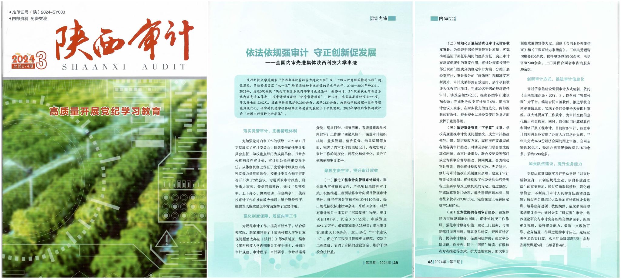 近日,《陜西審計》(2024年第三期,總第274期)內審專欄報道我校審計處先進集體事跡。原文如下: