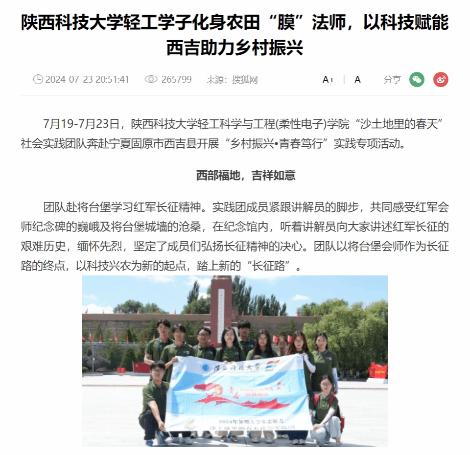 近日,《中華網(wǎng)》《中國大學(xué)生在線》《陜西青年網(wǎng)》報道我校學(xué)子化身農(nóng)田“膜”法師,以科技賦能西吉助力鄉(xiāng)村振興。