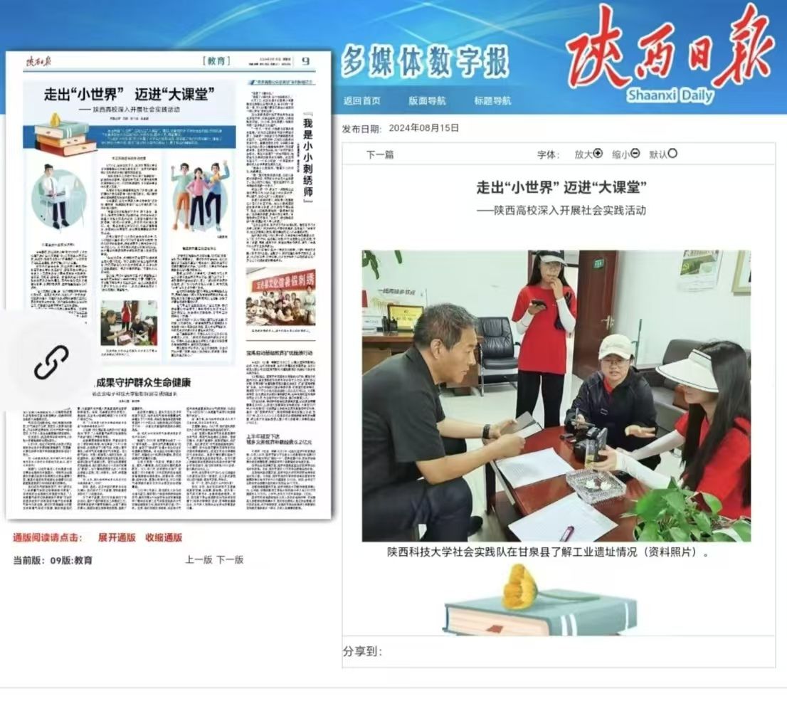 近日,《陜西日報(bào)》報(bào)道我校深入開展社會實(shí)踐活動走出“小世界” 邁進(jìn)“大課堂”。