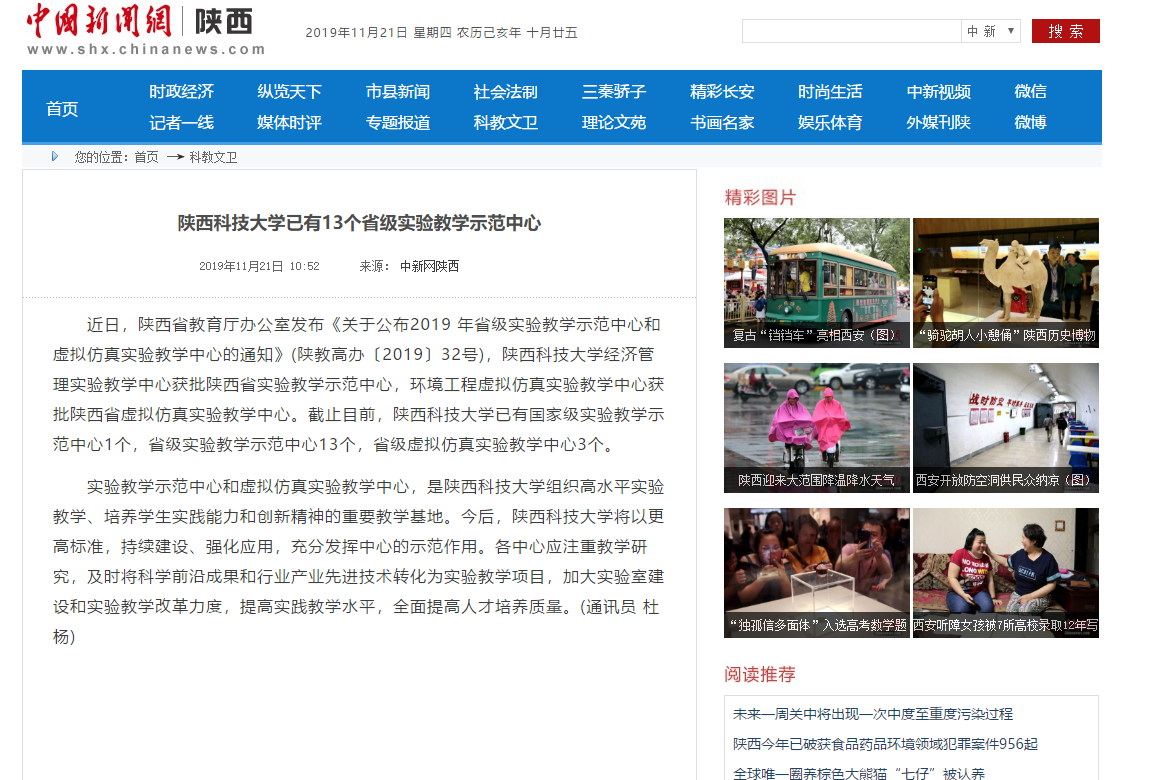 中國(guó)新聞網(wǎng):陜西科技大學(xué)已有13個(gè)省級(jí)實(shí)驗(yàn)教學(xué)示范中心