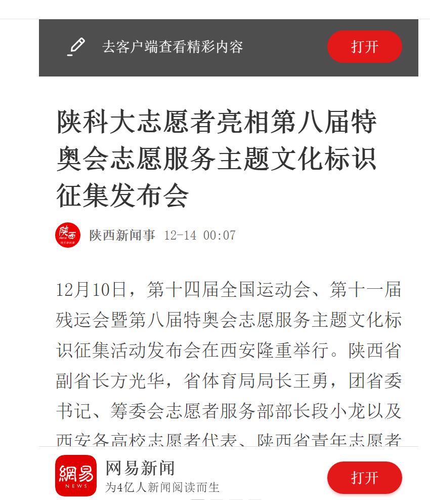 網易新聞APP:陜科大志愿者亮相第八屆特奧會志愿服務主題文化標識征集發布會