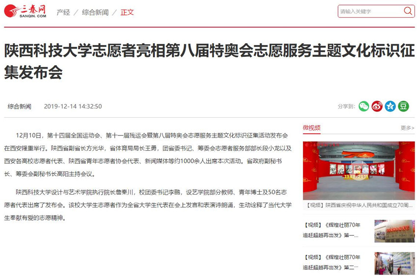 三秦網:陜西科技大學志愿者亮相第八屆特奧會志愿服務主題文化標識征集發布會