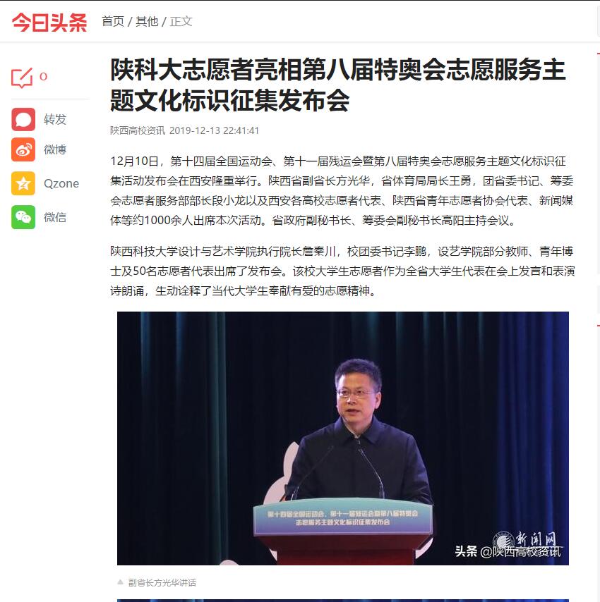 今日頭條:陜科大志愿者亮相第八屆特奧會志愿服務主題文化標識征集發布會