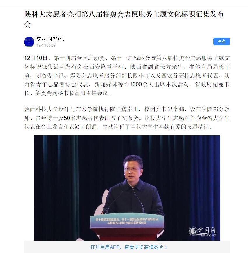 百度APP:陜科大志愿者亮相第八屆特奧會志愿服務主題文化標識征集發布會