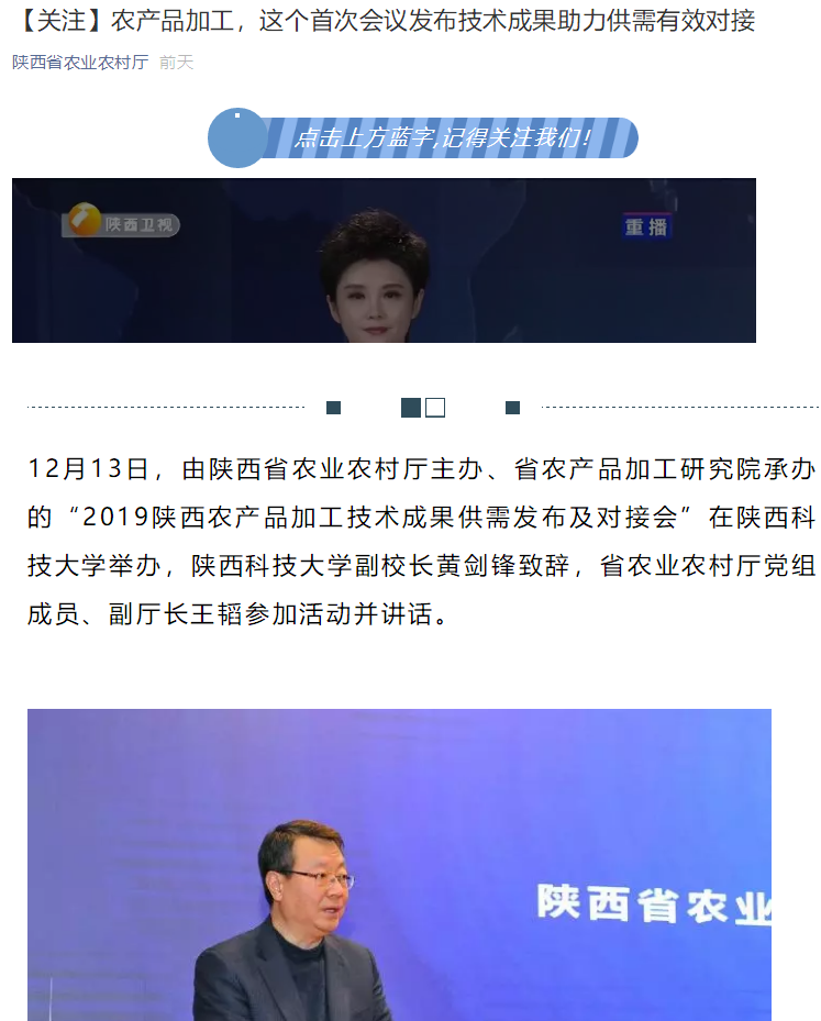 陜西省農(nóng)業(yè)農(nóng)村廳官微:農(nóng)產(chǎn)品加工,這個首次會議發(fā)布技術(shù)成果助力供需有效對接