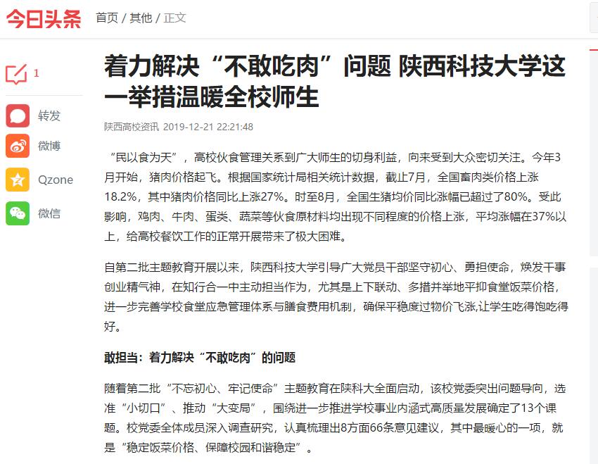 今日頭條APP:著力解決“不敢吃肉”問題 陜西科技大學(xué)這一舉措溫暖全校師生