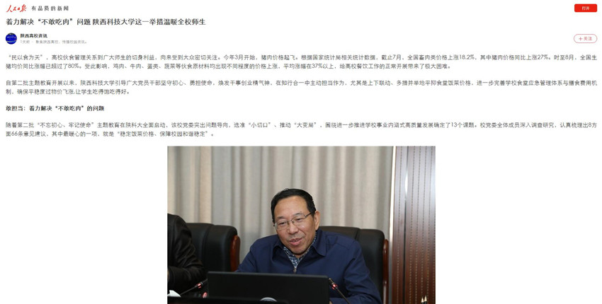 人民日?qǐng)?bào)APP:著力解決“不敢吃肉”問題 陜西科技大學(xué)這一舉措溫暖全校師生