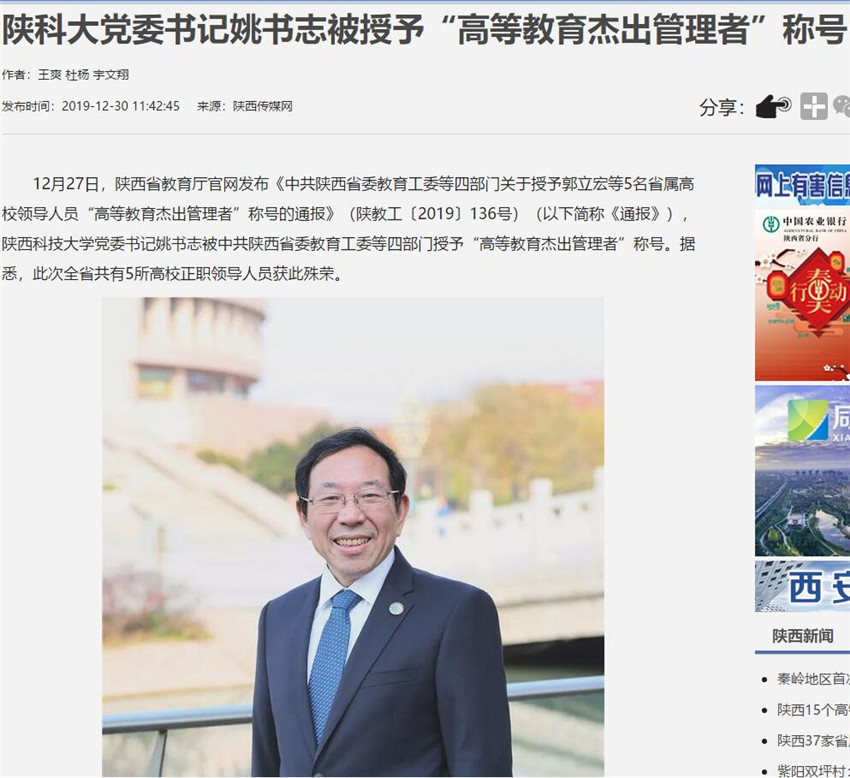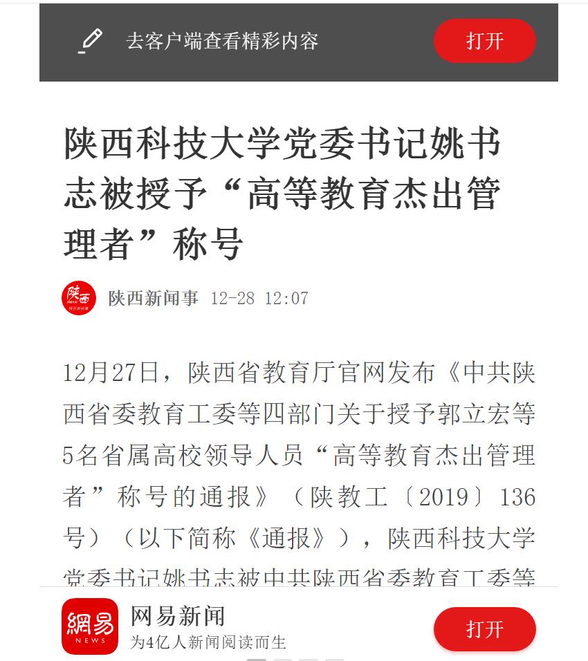 網易新聞APP:陜西科技大學黨委書記姚書志被授予“高等教育杰出管理者”稱號