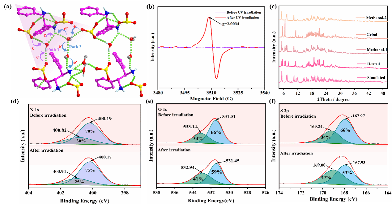 (1). R/S-iHOF-19充分發揮其結構靈活性和氫鍵的動態特性,實現材料性能的精準調控。通過調控結構框架中的溶劑(水和甲醇)分子的得失可以控制光致變色的開關。實現了具有溫度、溶劑雙重控制的智能響應光致變色材料的探索和合成。