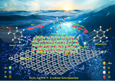 團隊開發出In2O3/Au/POCN三元Z型異質結光催化劑,首次實現無溶劑條件下芐醇有氧光催化氨氧化制備苯甲腈。通過構建In2O3與磷氧共摻雜氮化碳(POCN)的Z型異質結,并引入金納米顆粒作為電子橋,顯著提升了光生載流子的分離效率。研究首次揭示了無溶劑反應中生成水的負面影響:水會占據催化劑活性位點并促進腈水解為酰胺,而添加4?分子篩可通過除水使收率提升31.7%,這一發現為無溶劑催化體系的優化提供了關鍵策略。該工作以“Solvent-free direct aerobic photocatalytic ammoxidation of benzyl alcohol to benzonitrile on In2O3/Au/POCN”為題發表在《Journal of Catalysis》。20級博士姜旭祿為第一作者,王偉濤副教授和劉昭鐵教授為通訊作者。