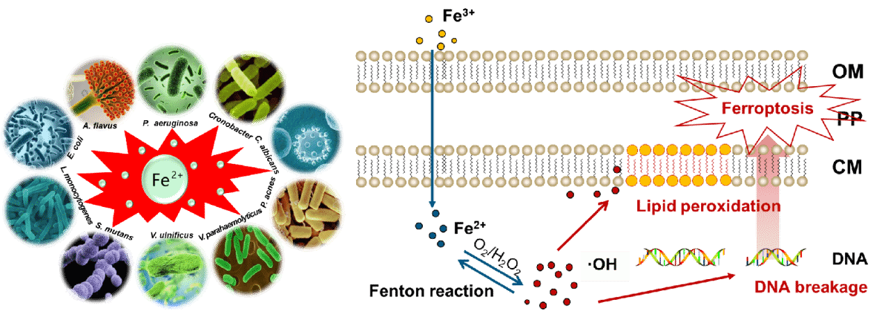 鐵基抗菌劑的廣譜殺菌機(jī)制示意圖