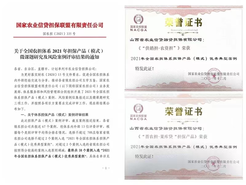 山西農(nóng)擔(dān)多項(xiàng)擔(dān)保產(chǎn)品(模式)案例及微課題研究獲國(guó)家農(nóng)擔(dān)表彰